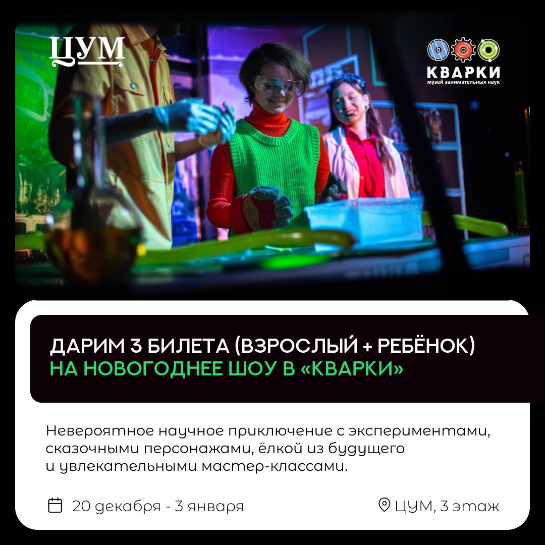 🎁 Дарим 3 билета (взрослый + ребёнок) на новогоднее шоу в «Кварки»! 🧪
