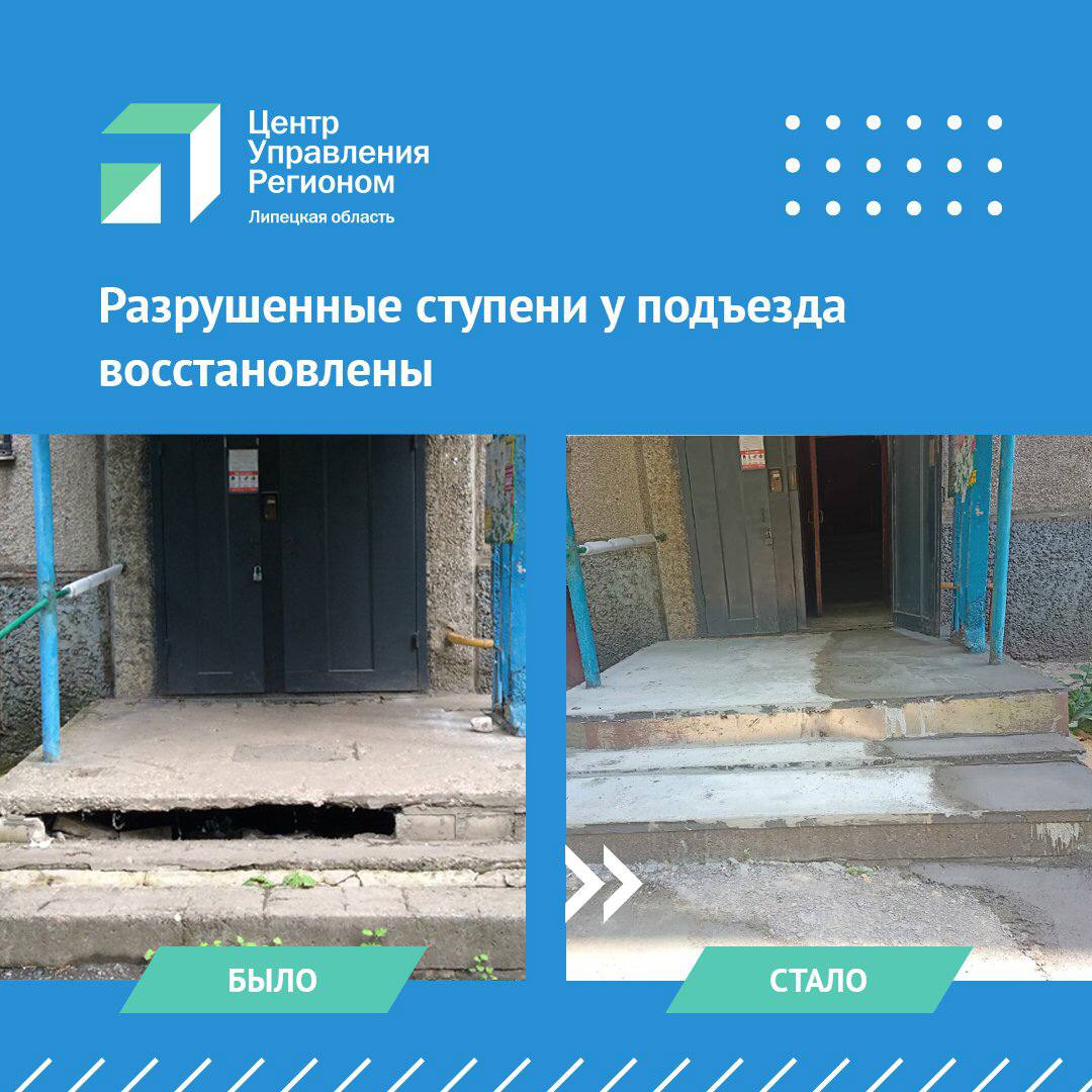 зафиксировал в соцсетях жалобу жителя Липецка. Мужчина просил отремонтировать ступени на входе в подъезд дома 22/3 на улице 9-й микрорайон.