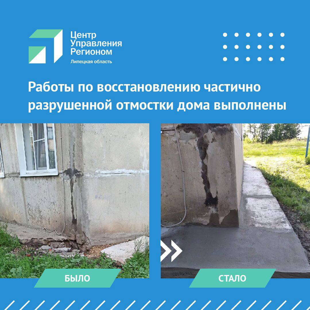 ЦУР Липецкой области зафиксировал в соцсетях обращение липчанки, которая пожаловалась на разрушенный фундамент дома на ул. Станционная г. Грязи. Отмостка пострадала во время установки теплообменников. Женщина долго пыталась добиться ремонта.