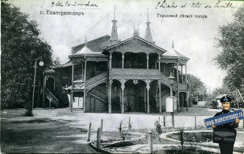 15 сентября 1910 года в летнем театре городского сада состоялся единственный, данный в Екатеринодаре, концерт знаменитого баса Ф. И. Шаляпина. Приглашение выступить здесь он получил от городских властей еще в 1909 г.