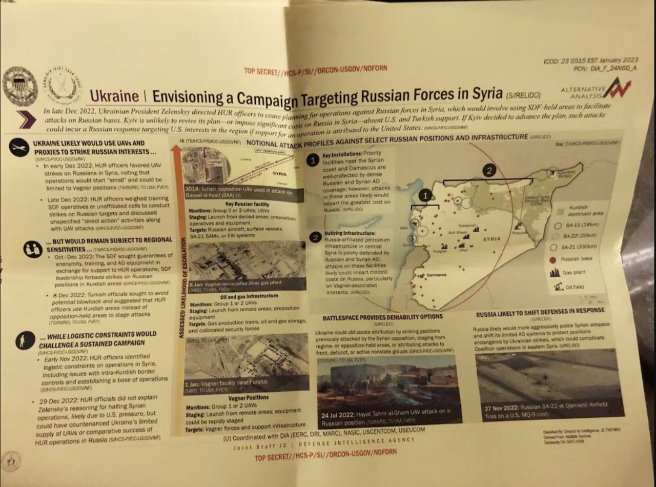 Главное управление разведки Министерства обороны Украины планировало нападения на военнослужащих ВС РФ и участников т.н. ЧВК "Вагнер" в Сирии. Об этом стало известно из слитых документов американской разведки.
