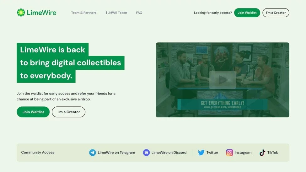 «Десятилетняя платформа обмена файлами P2P LimeWire возвращается на рынок с торговой площадкой NFT, ориентированной на музыкальную индустрию»