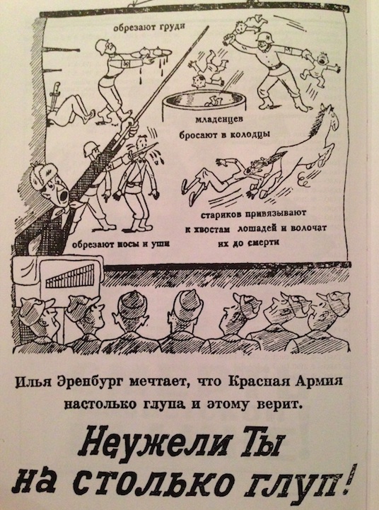 Нічого не змінилося в московитській пропаганді з часів Другої світової, коли Райх випустив цю листівку (зображення внизу). Тільки тепер укрофашисти розпинають хлопчиків в трусиках, а жінкам після згвалтування задувають монтажну піну. Тепер замість "холокосту" та "плану ост"(1) - "геноцид російськомовних", а замість Еренбурга - Кисельов та Соловйов.