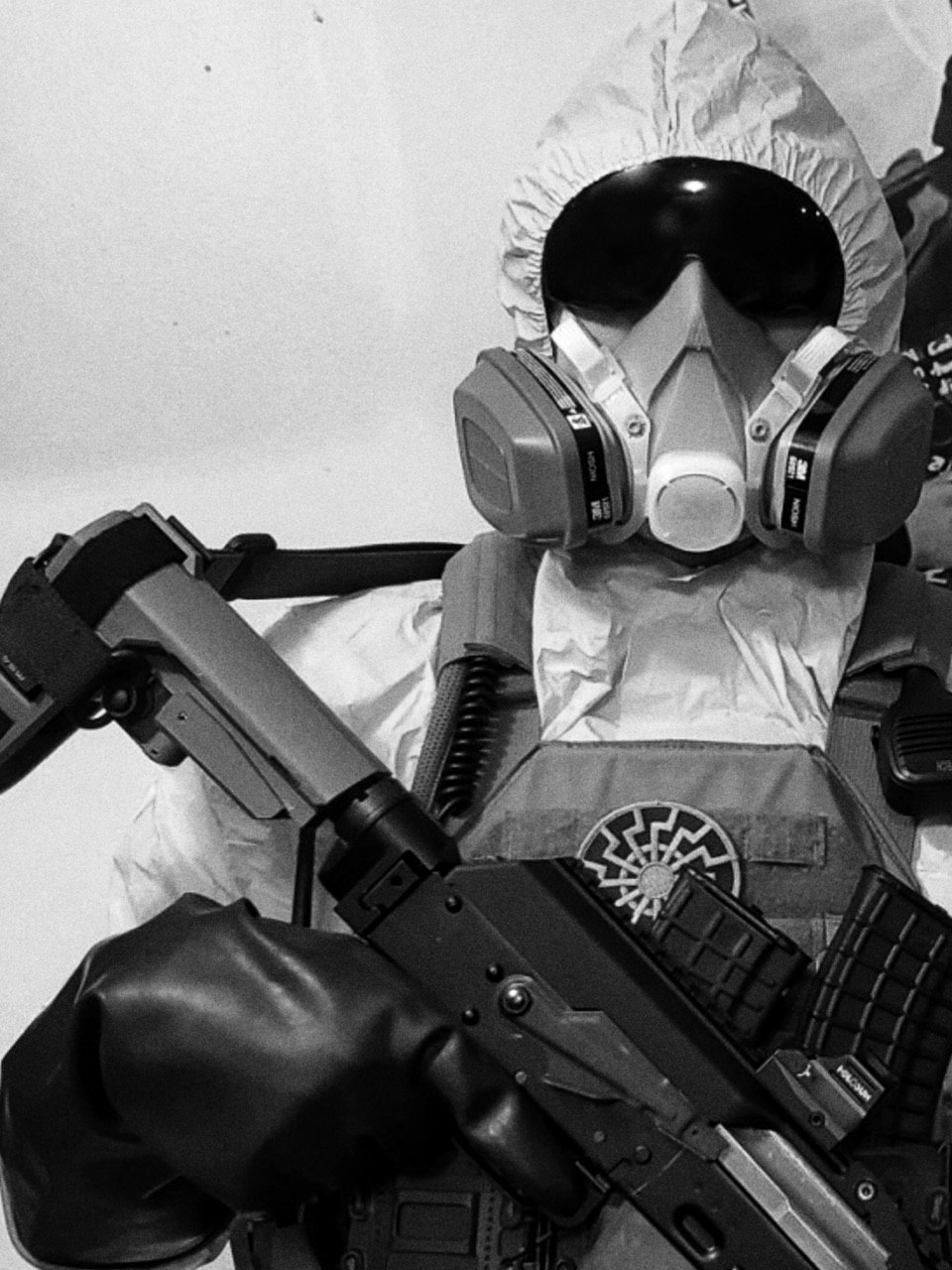 На животі розташовані три стріли - символ R.A.S.H. (Red & Anarchist Skinheads), скінхедів-ліваків.