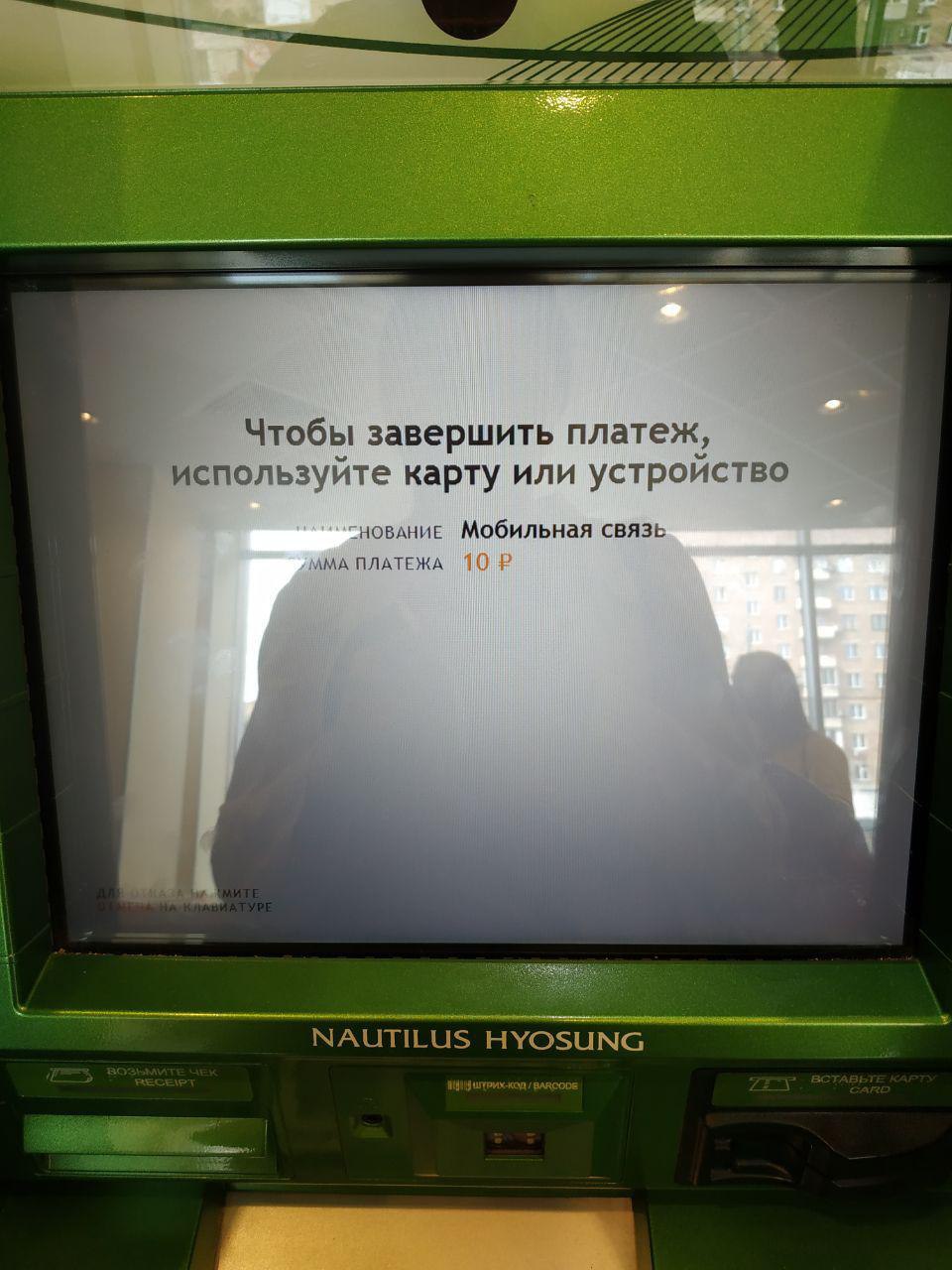 Как специалистам по интерфейсам, нам стало интересно, насколько оформление экранов провоцирует пользователей на такую ошибку. Поэтому мы дошли до ближайшего отделения Сбербанка и изучили первый экран терминала, который в норме должен видеть только что подошедший к нему человек, и тот самый экран, приглашающий вставить карту для подтверждения платежа.
