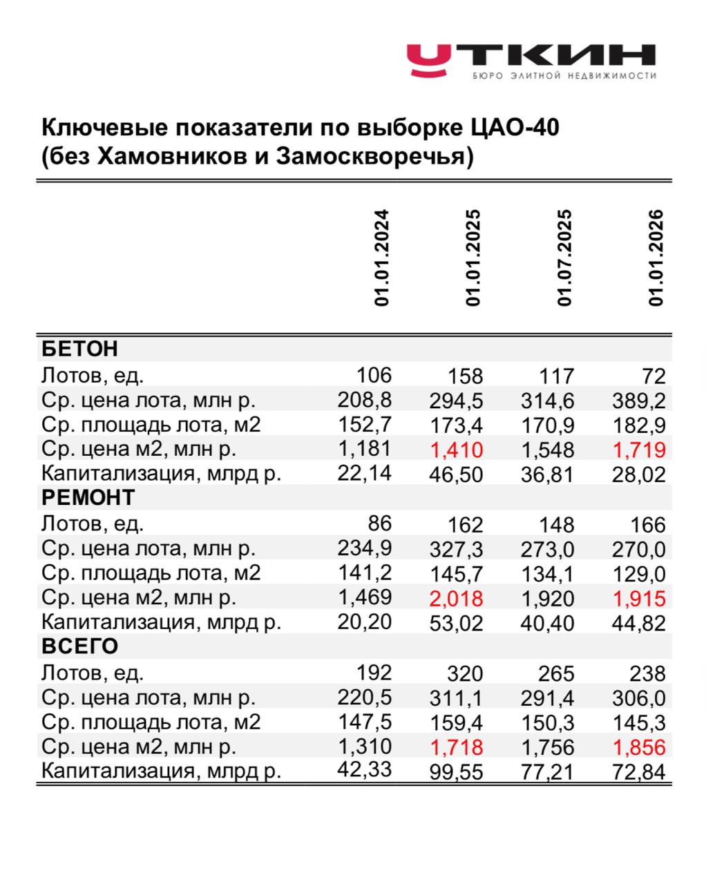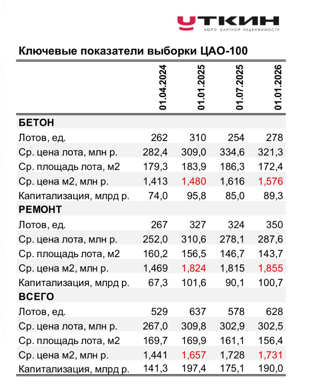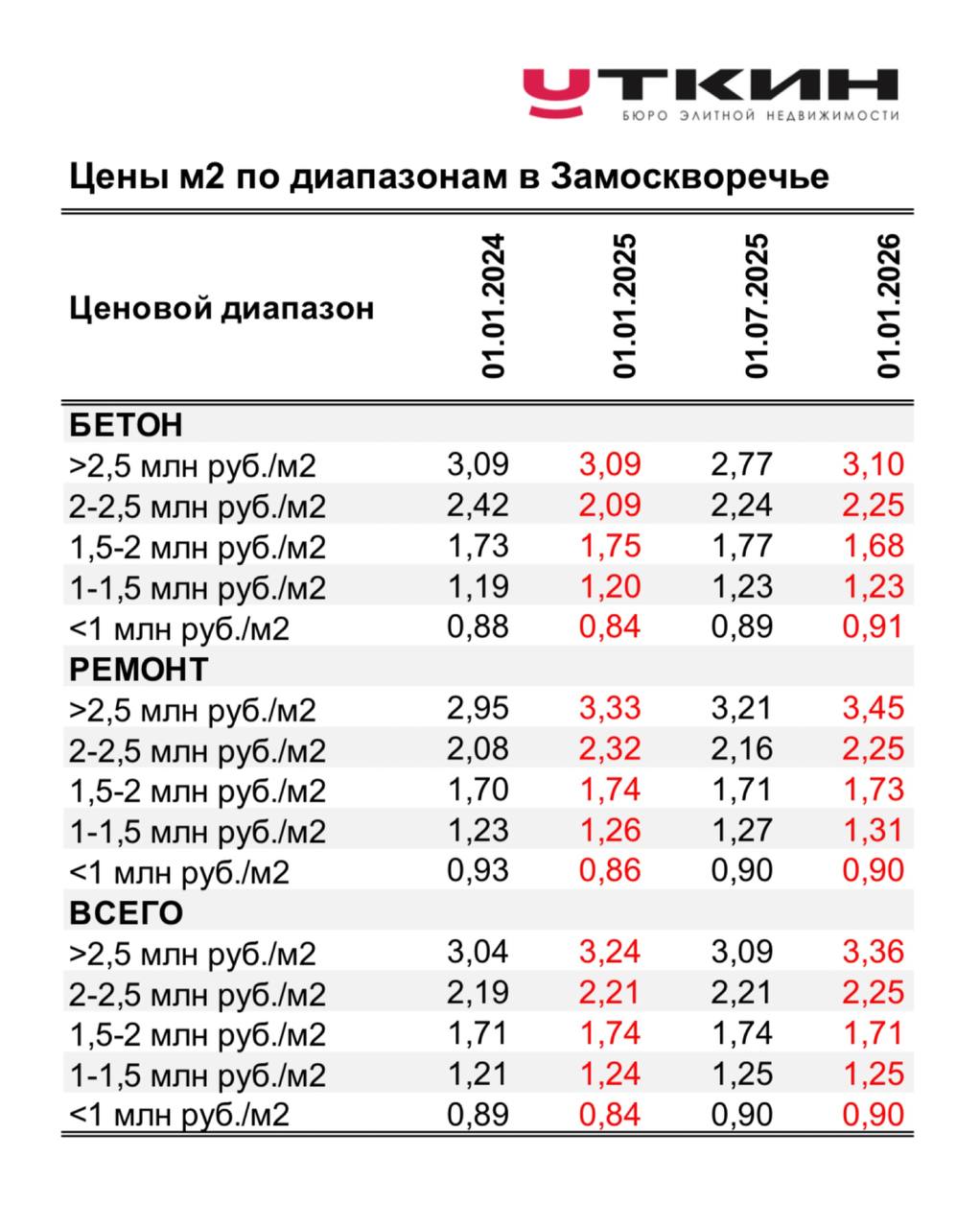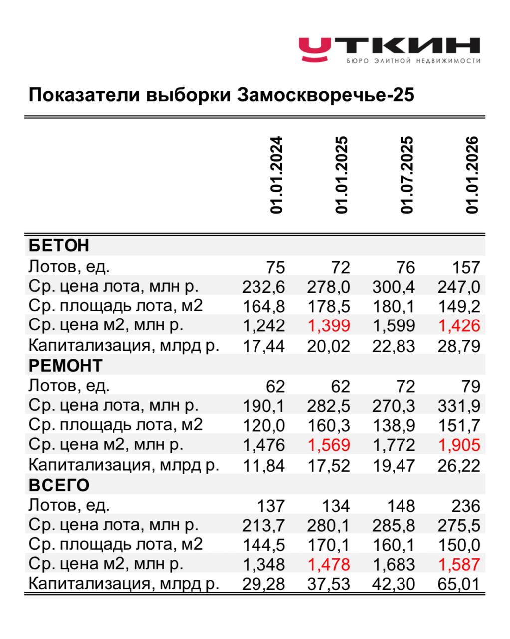 Напомню, что сводный ценовой индекс по выборке Замоскворечье-25 (бетон и ремонт) вырос за 2025 год на 7,4% (1,587 млн руб./м2).