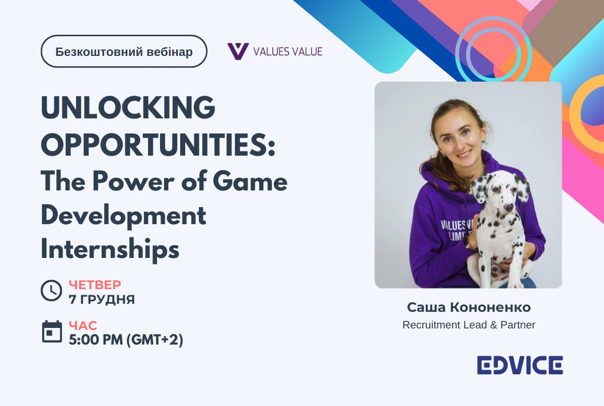 Приєднуйтесь до безкоштовного вебінару від Recruitment Lead та Partner компанії Values Value Саши Кононенко на платформі Edvice: