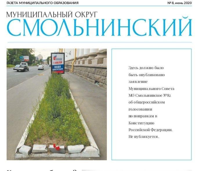 5. В МО Смольнинское типография зацензурили заявление совета против поправок, поставив "заглушку" вместо него в газету.