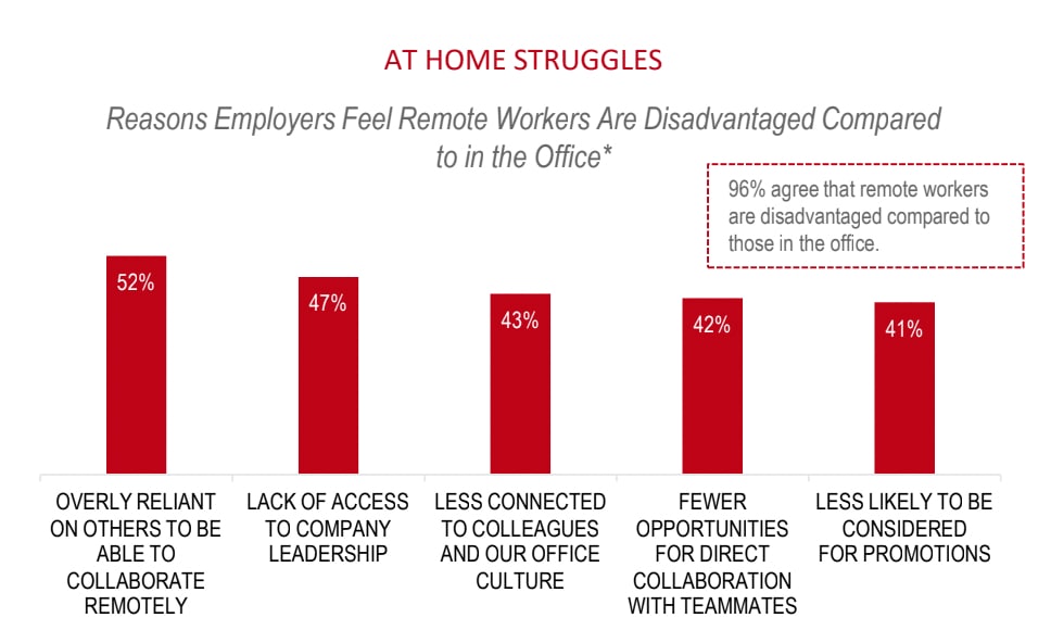По мнению Ласло Бока, менеджерам по-прежнему сложно руководить и управлять рассредоточенной командой. Со временем это приведет к тому, что к работникам с гибридным графиком будет предвзятое отношение и однобокие мотивационные схемы выдавят их в офис. Срок — 3-5 лет.