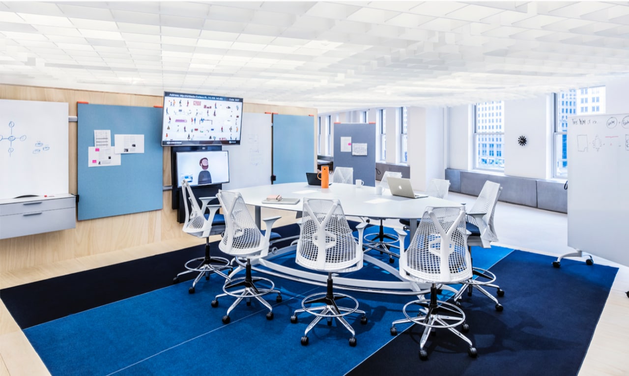 Мы ушли от маленьких комнат с оптимизированной мебелью... За обычным конференц-столом камера не может видеть треть людей в комнате! ...Мы перестали заморачиваться цветом стен, специализированным освещением и даже окнами, так что теперь половина звонков выглядит как интервью с кем-то из программы защиты свидетелей!