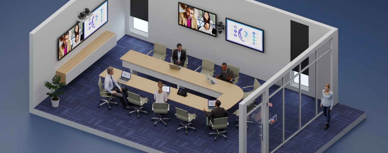 Это новое устройство для гибридной работы с функциями телефонии и видеоконференций. Предназначено для офисов с системой бронирования рабочих мест, освобождает ресурсы компьютера, обеспечивает одинаково качественную связь всем сотрудникам и удобство управления администраторам через Control Hub.