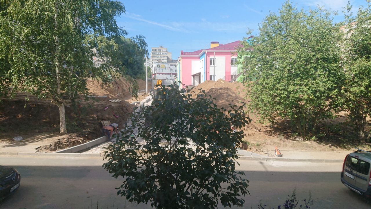 Вчера корни у дерева подрезали, сегодня бордюры (поребрики) устанавливают. А корни дерева в «воздухе» будут?