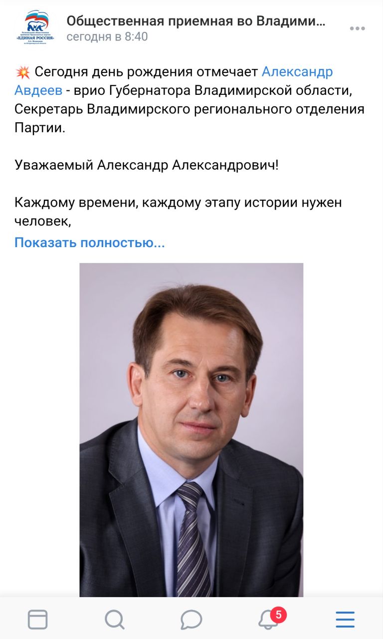 По мнению сотрудников общественной приемной партии Единая Россия, именно так выглядит врио Губернатора Владимирской области Александр Авдеев.