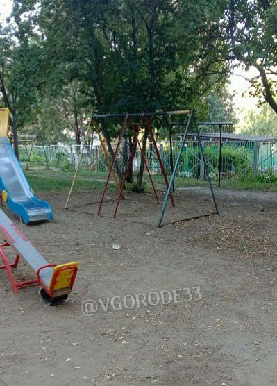 Во дворе дома 2А по пр-ту Строителей во Владимире на качелях нет качель.
