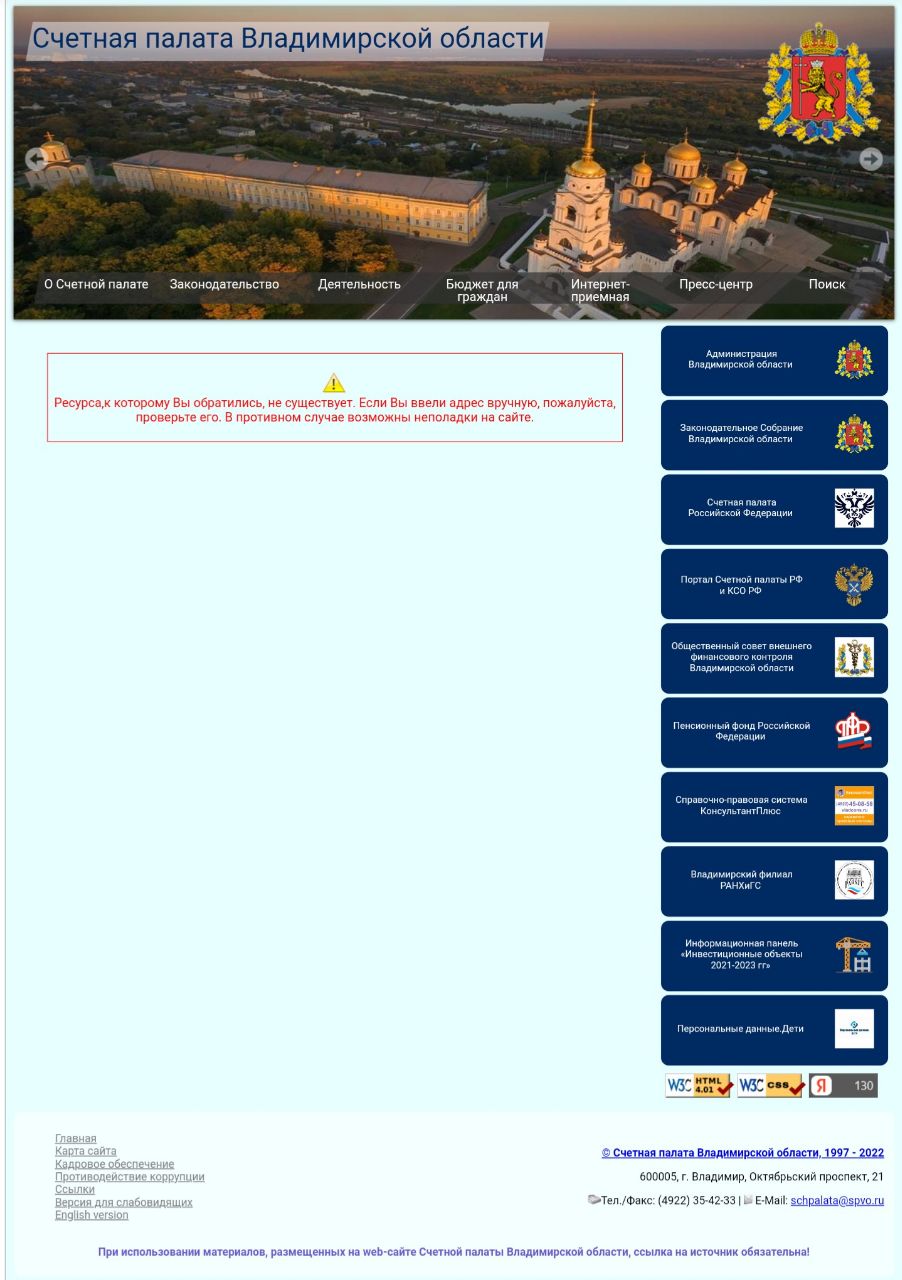 ❗ С сайта Счётной палаты Владимирской области убрали информацию об отставании в графике исполнения национальных проектов в 33 регионе.