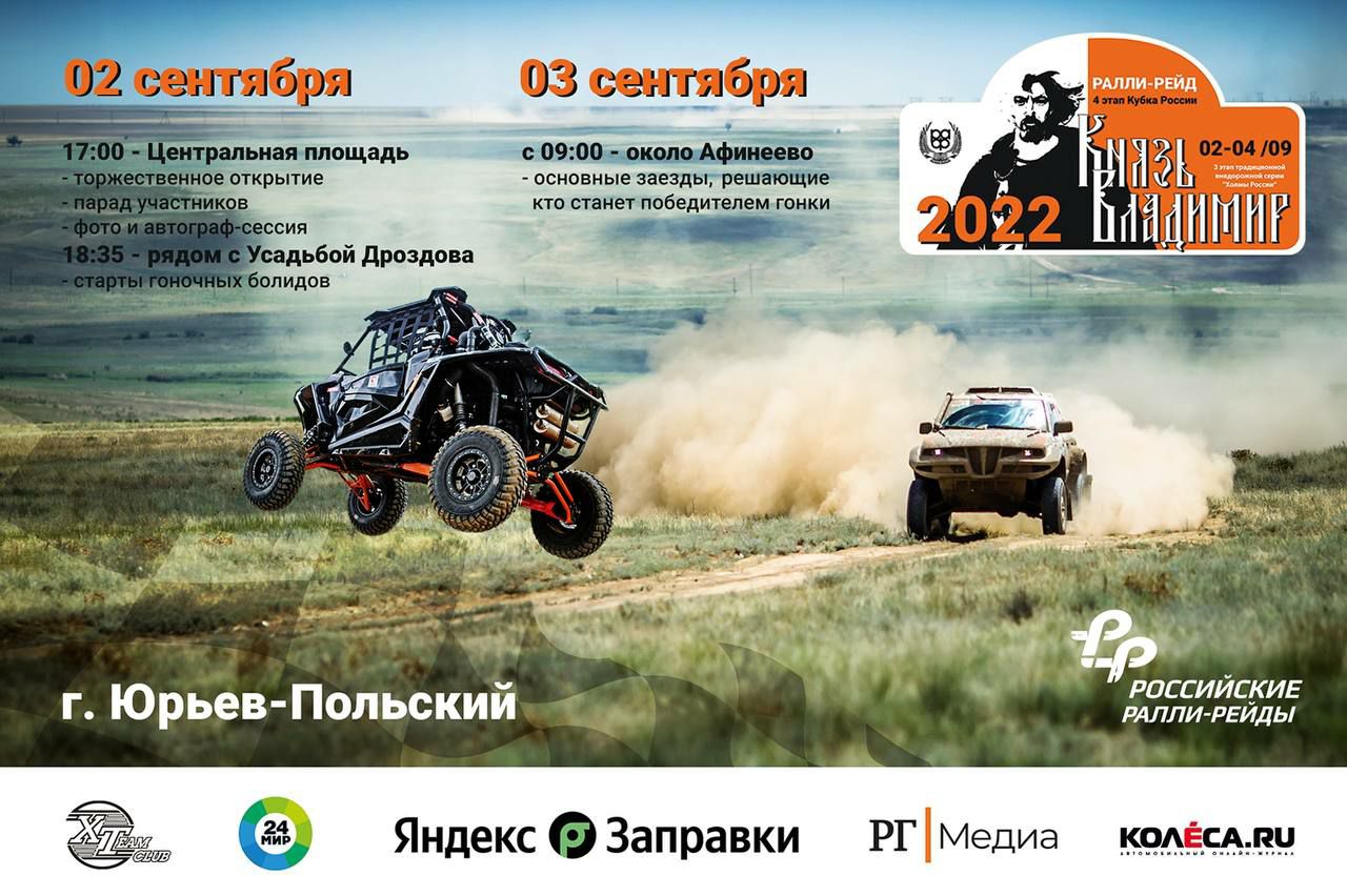 Более 30 спортивных экипажей из Санкт-Петербурга, Москвы, Казани, Ульяновска, Ростова, Брянска и Владимира будут сражаться за звание КМС и МС автомобильного спорта в Юрьев-Польском на этапе Кубка России по ралли-рейдам «Князь Владимир».