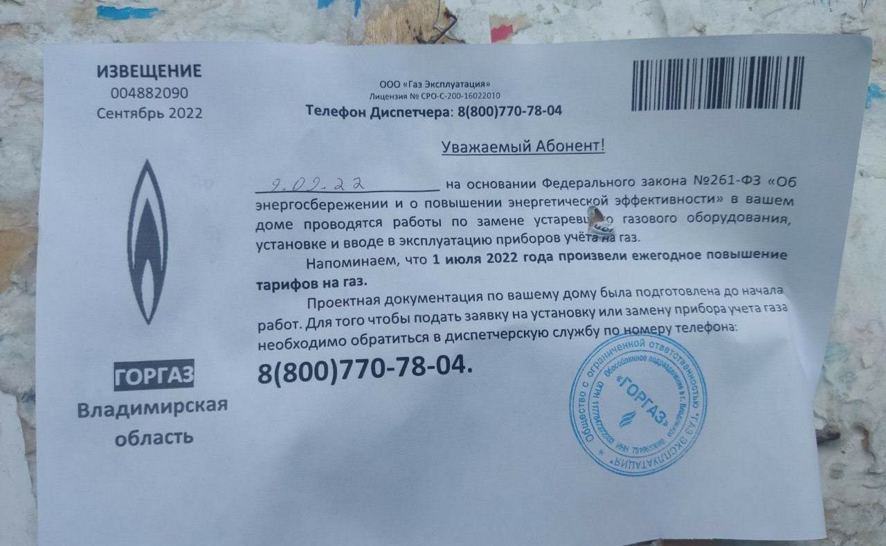 ⚡На подъездах многоквартирных домов города Владимира появляются новые объявления, теперь от ГОРГАЗа 🤦♂️