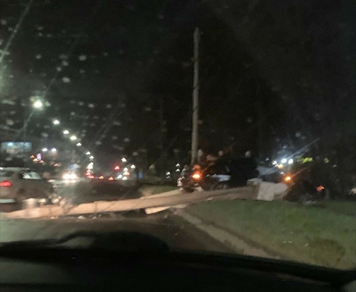 На перекрестке пр-т Ленина и Верхняя Дуброва во Владимире автомобиль врезался в опору освещения. Сейчас на перекрестке не работают светофоры.