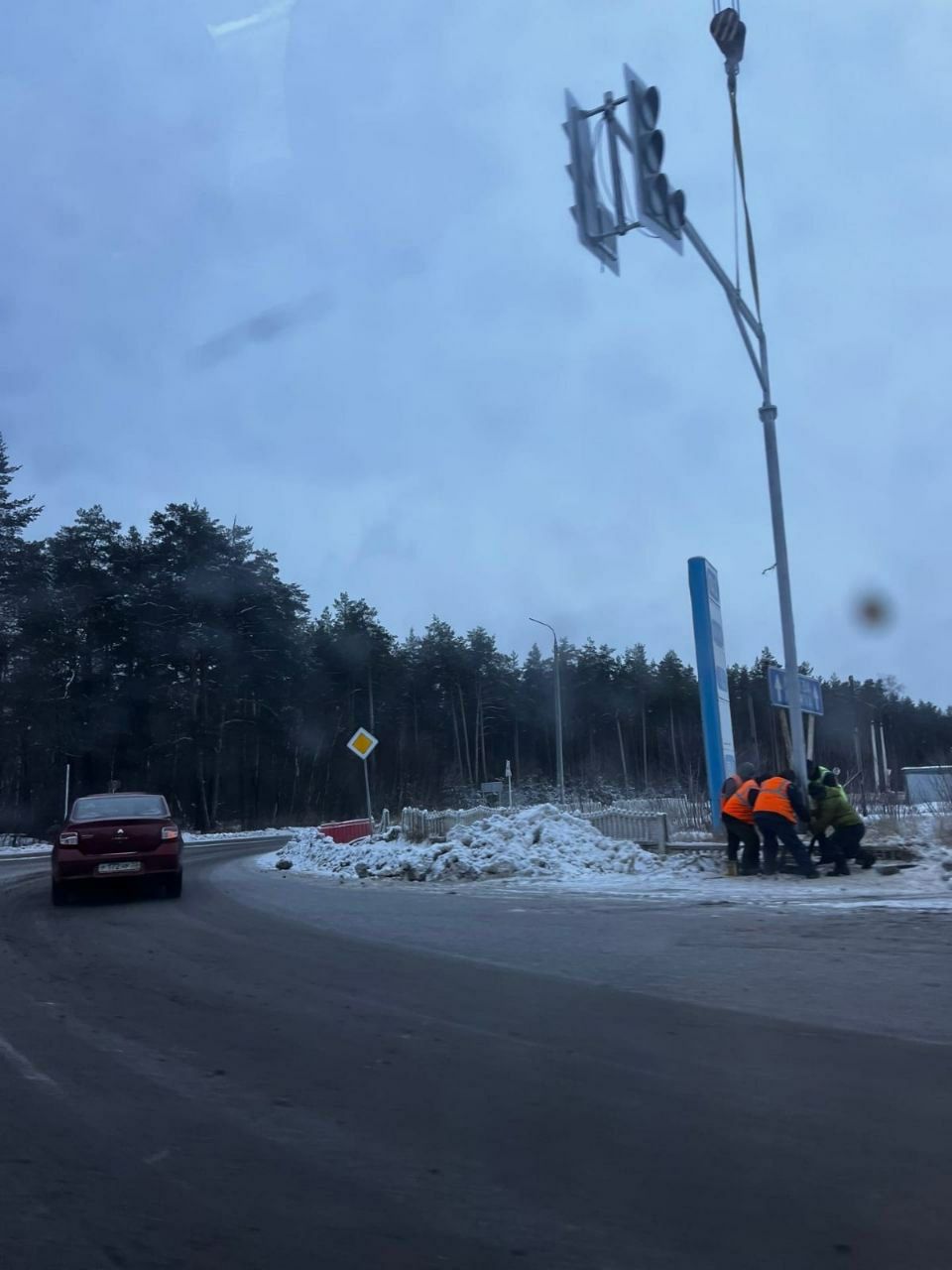Установка светофоров на повороте в Радужный в Загородном парке города Владимира идёт полным ходом.