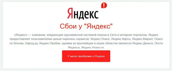 Ряд сервисов компании «Яндекс» перестали работать в результате сбоя.