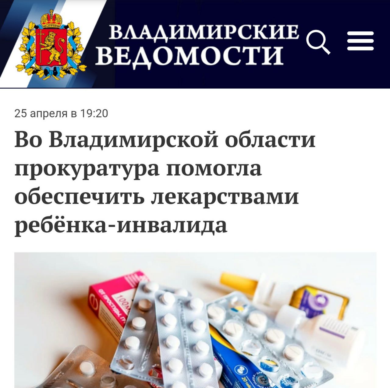 Очень печально, что во Владимире выдачу жизненно важных лекарств для ребенка-инвалида приходиться добиваться только через прокуратуру 🤦♂️