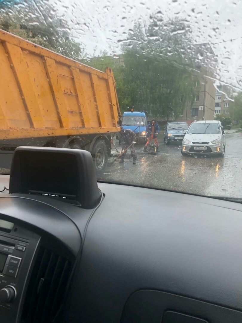 Даже в дождь продолжается укладка асфальта. Главное сроки - качество не важно!!!