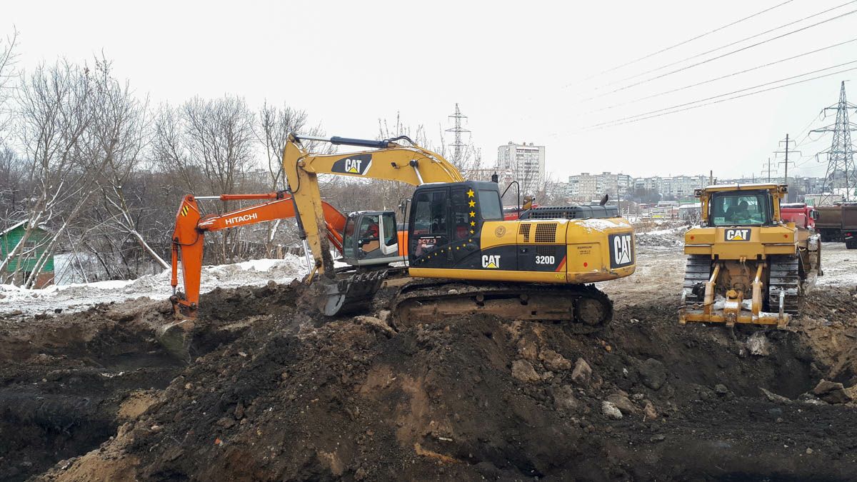 На другом участке работают экскаваторы и самосвалы, снимают грунт, выравнивают створ дороги, ведь перепады высот составляют более 15 метров.