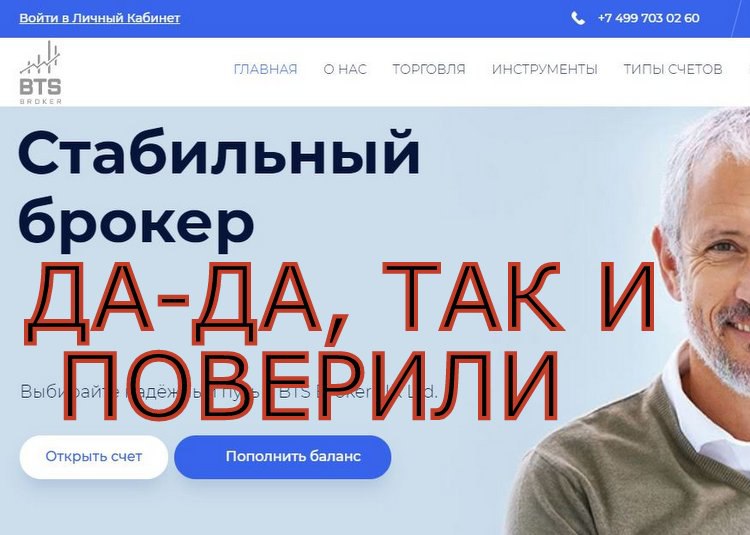 Неоднократно звонили и представлялись компаний БТС Брокер (BTS Broker). По общению очень приятные. Несмотря на три «нет», продолжают разговор🙂 Говорят, что не резиденты РФ. Предлагают биржевую торговлю. Интернет пишет, что базируются они в Лондоне. Лохотрон?