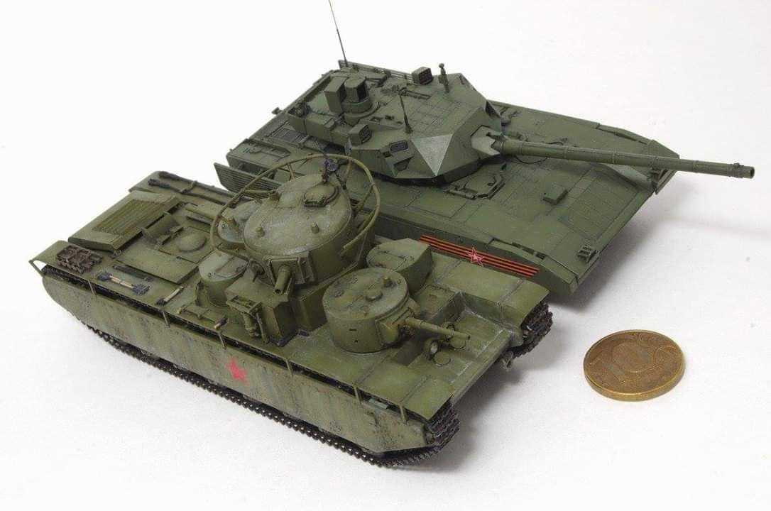 Как важно порой сопоставить размеры. Тяжелый пятибашенный советский танк Т-35 30-х годов и перспективный Т-14 "Армата" (не такой уж он и большой)