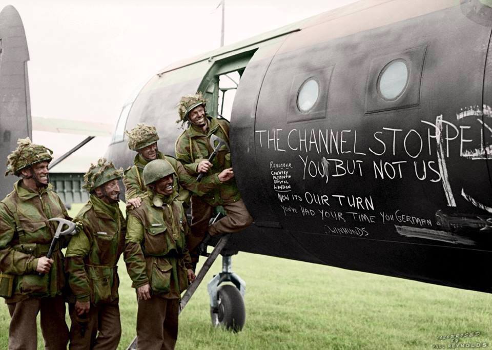 «Канал (Ла-Манш) остановил вас, но не нас». Надпись на десантном планере 6-й британской воздушно-десантной бригады. Бойцы этой бригады должны захватить стратегические мосты Ранвиль и Бенувиль, чтобы не дать немецким танкам контратаковать зону высадки в Нормандии, июнь 1944