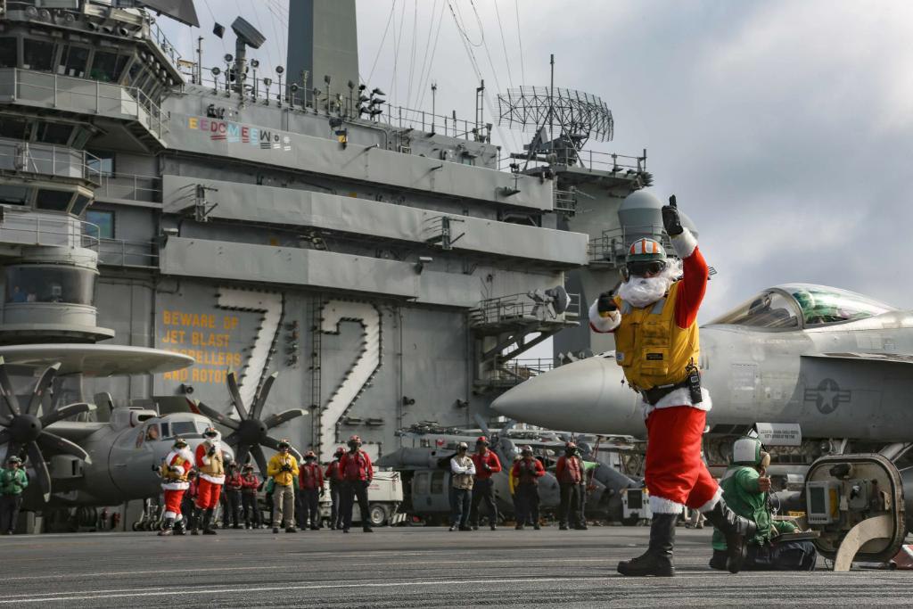 Санта и его помощники руководят полетами на палубе авианосца "Абрахам Линкольн". Хо-хо-хо