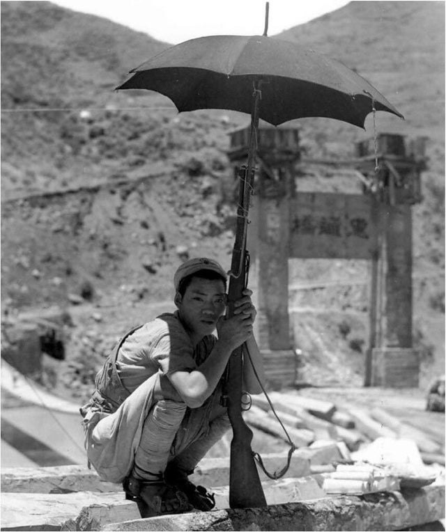 Китайский солдат на посту под зонтиком. Бирма. 1944 год. Китайские дивизии, вооруженные и обученным союзниками, сыграли большую роль в противостоянии японцам в Юго-Восточной Азии. Наша статья об этом: https://warhead.su/2020/01/23/kitay-zabytyy-front-vtoroy-mirovoy
