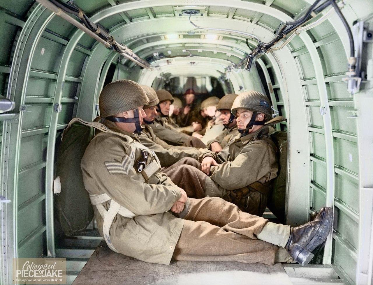 Десантники в бомбардировщике "Армстронг Уитворт Уитли" во время учений, август 1942 года. Средние двухмоторные "Уитли" применялись не только как бомберы, но и для доставки грузов, перевозки десанта и буксировки планеров