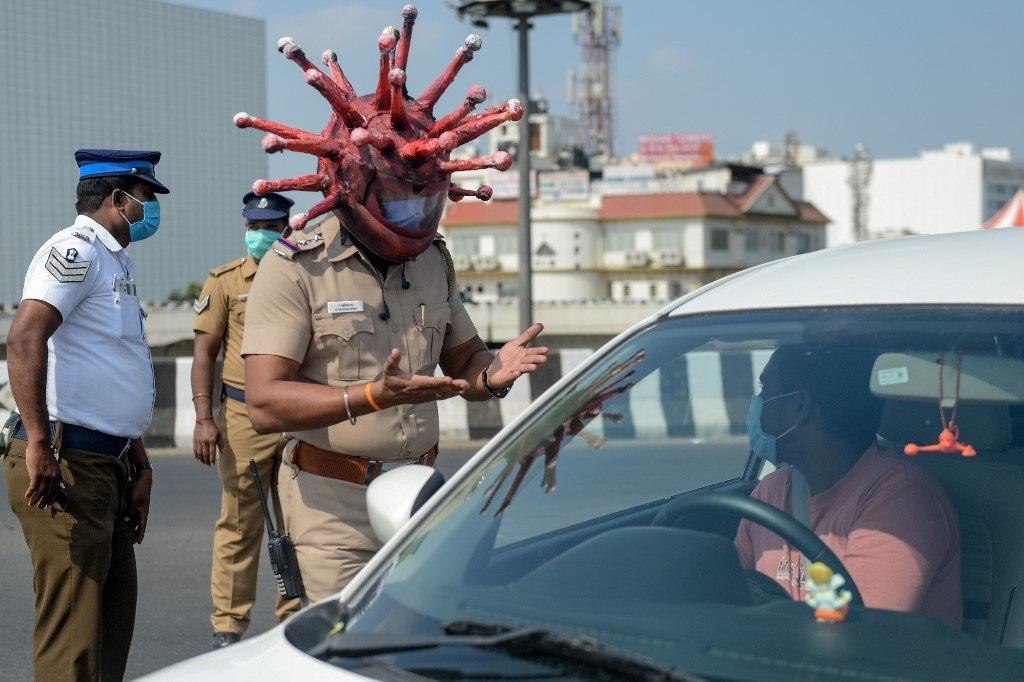 Индийские полицейские наглядно показывают ужасы коронавируса водителям, которые не желают соблюдать карантинные меры