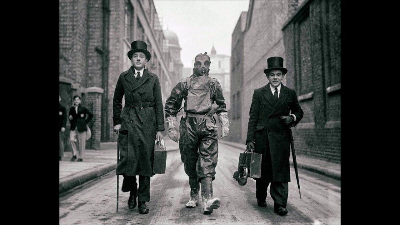 Учащиеся частной школы идут с сотрудником Вестминстерского городского совета для сдачи экзамена по химзащите, 1930-е.