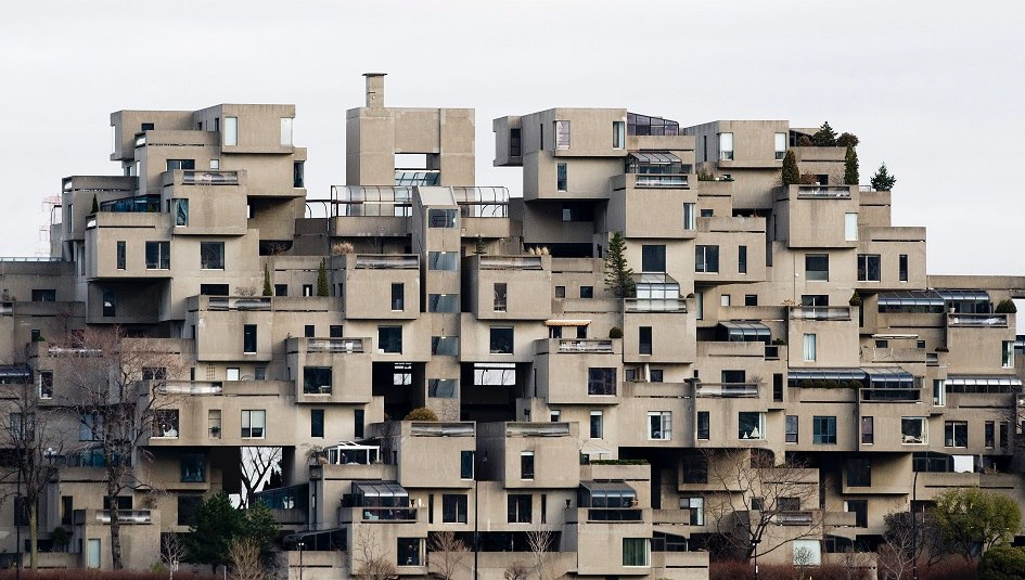 Этот жилой комплекс был построен в канадском городе Монреаль в 1967 году по проекту архитектора Моше Сафди.