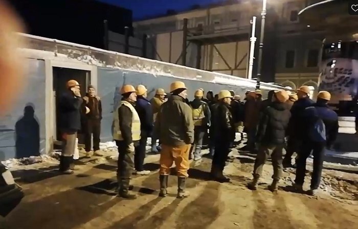 Петербургские метростроители пришли на Театральную площадь поговорить о деньгах