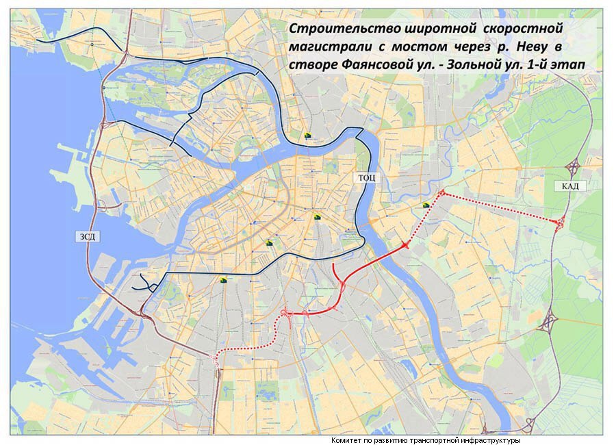Напомним, проект шестиполосной трассы с прогнозируемой интенсивностью движения около 230 тыс. автомобилей в сутки поделен на два участка: от развязки с ЗСД в районе Благодатной улицы до Витебского проспекта и далее до транспортного узла близ Ладожского вокзала.