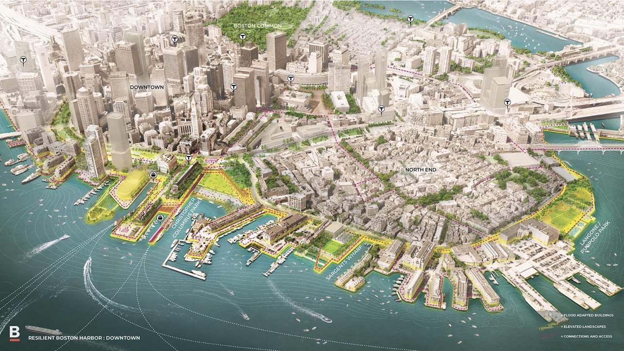В Бостоне, также как и в Нью-Йорке, задумываются о проекте по изменению набережной инфраструктуры, что позволит защитить город от наводнений. Проектом предполагается создание возвышенных ландшафтов, а также укрепление парков и строительство устойчивых к наводнениям зданий. Всего в рамках проекта планируется укрепить целых 47 миль береговой линии города.