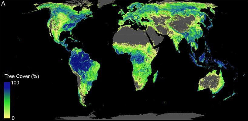 Исследователи, которые занимаются изучением решения проблемы изменения климата, выявили на карте места по всему миру, где могут расти новые деревья и сколько углерода они будут перерабатывать. По их подсчетам выяснилось, что в нынешних климатических условиях Земля может вместить 4,4 миллиарда гектаров непрерывного древесного покрова. Это на 1,6 млрд. больше, чем существующие в настоящее время 2,8 млрд. гектаров.