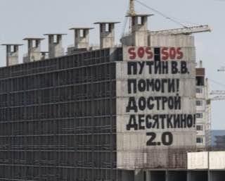 Дольщики недостроенного ЖК «Десяткино 2.0» в Мурино в Ленобласти адресовали сигнал SOS президенту России. На 20-м этаже дома появилась огромная надпись «SOS. Путин В.В., помоги! Дострой Десяткино 2.0!». Фотографию дольщики выложили в «ВКонтакте».