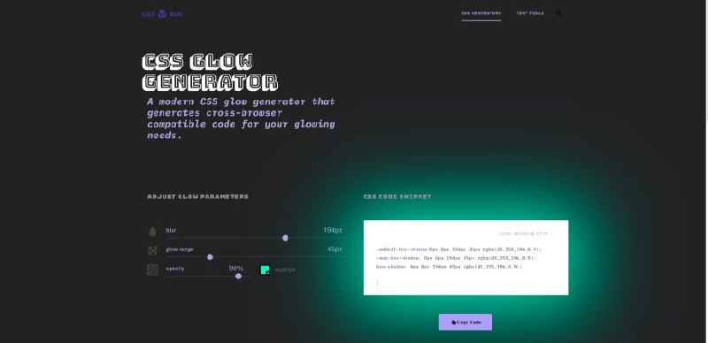 Коллекция генераторов CSS-кода для разнообразных элементов дизайна UI (фоны, градиенты, кнопки, разделители, тени, фильтры изображений).