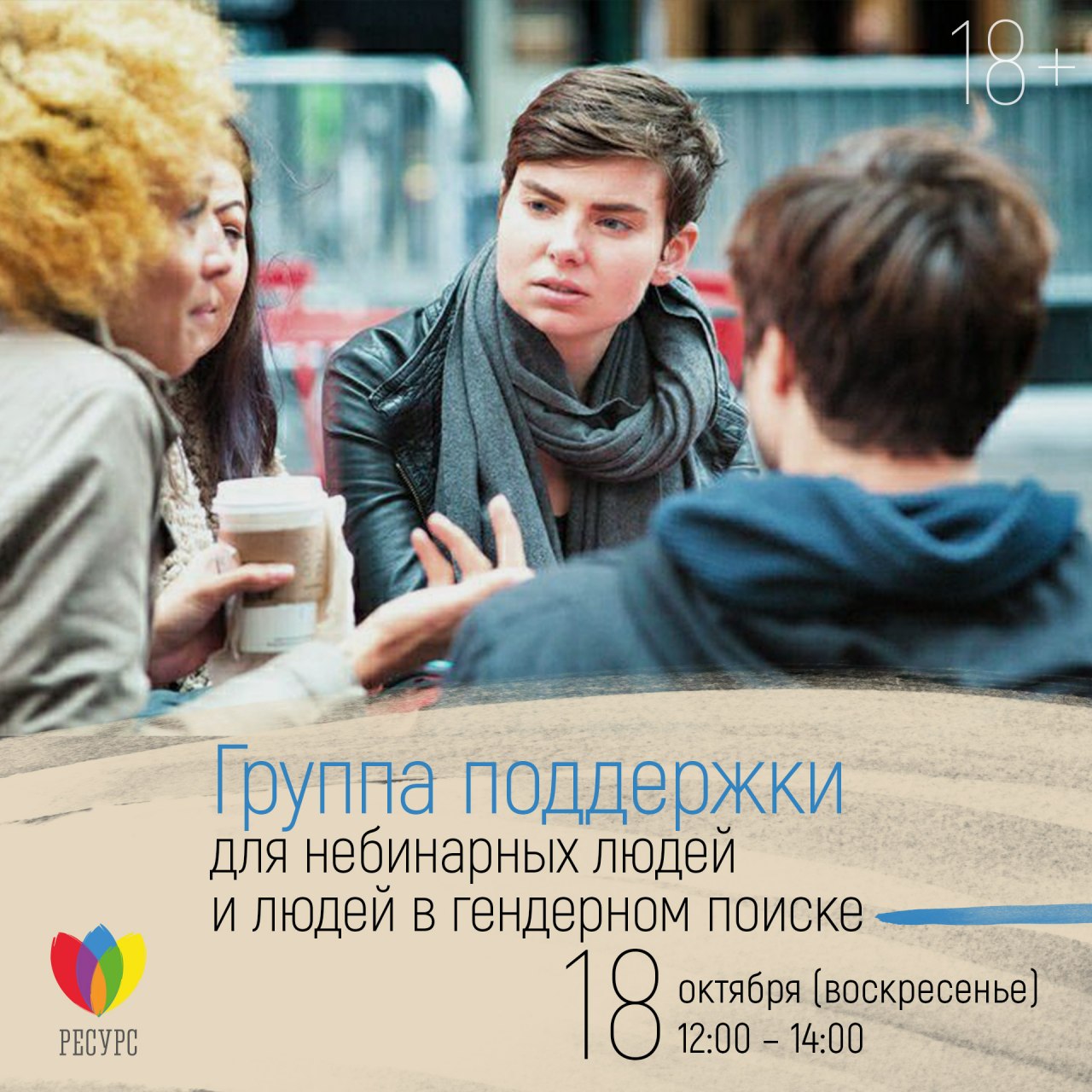 Приходите завтра на нашу группу онлайн. Не только небинарные, а ещё квир, гендерно-неконформные люди и люди в гендерном поиске.