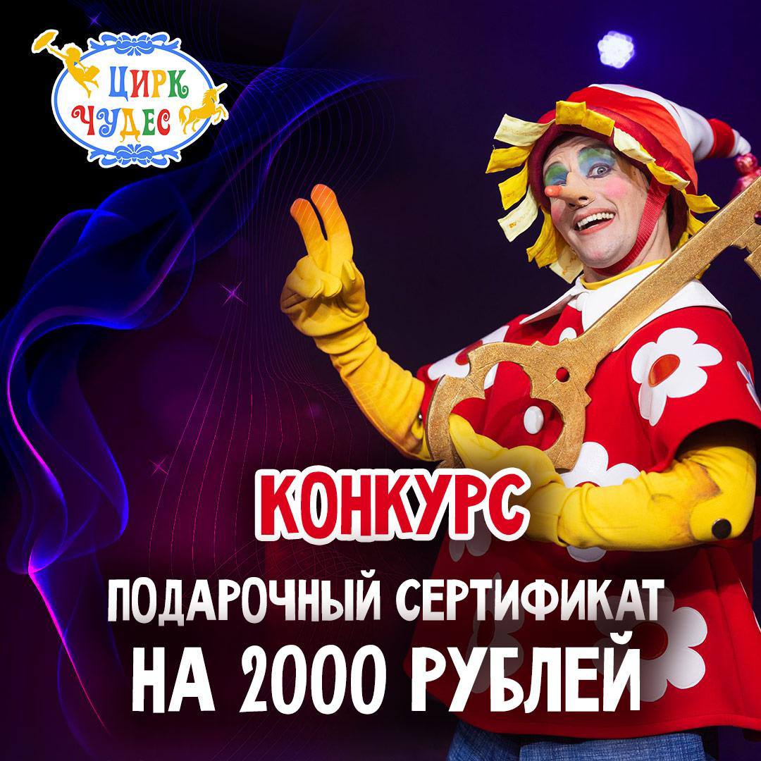 Дарим 10 сертификатов номиналом 2000 рублей на покупку билетов на цирковое шоу «Буратино и Золотой ключик», которое состоится 7 марта.