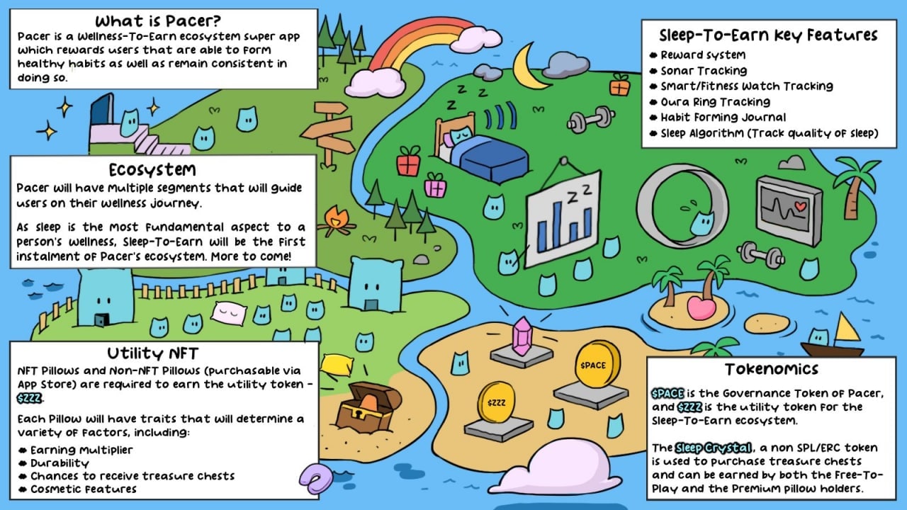 📝 Pacer - это экосистемой Wellness-to-Earn (W2E), которая стремится культивировать и распространять преимущества здорового образа жизни. Pacer вознаградит пользователей, которые придерживаются хороших привычек, связанных со здоровьем, таких как хороший сон, регулярная практика осознанности и систематические физические упражнения.