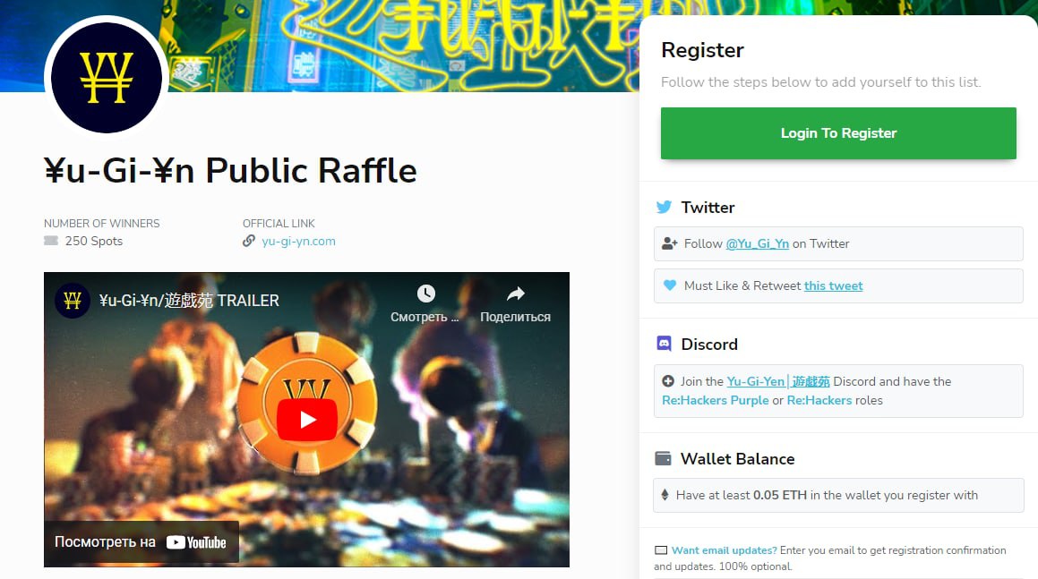 ▪️¥u-Gi-¥n - саплай коллекции 8888 штук, достойные соц.сети, куча коллаб, инфлов, в Twitter 130к подписчиков, в Discord онлайн 6,3к. Регаемся в раффл ТУТ, нужно холдить 0.05 ETH, будет разыграно 250 слотов, дедлайн TBA.