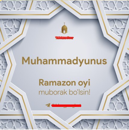 Ramazon tabriklarini yasash hamma uchun ochiq. Bot agar sekinlasa xafa bo'lmaysiz. Rasm tiniq formatda bo'lgani uchun yuklash uchun vaqt oladi.