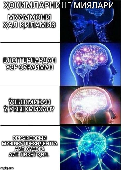 Бутун дунё ОТМларида ўз соҳасининг мутахассислари етишиб чиқади. Бизда эса форма кийиш, соқол олиш ва пора бериш бўйича "мутахассис" "дуб" каллалар етишиб чиқади.