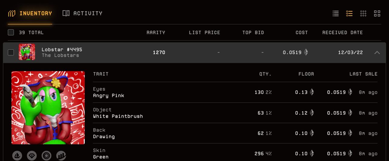Пока в комментариях идет война (ибо тут ультра актив вообще-то), я купил с рынка NFT из коллекции The Lobstars #4495 с rarity 1270/7777.